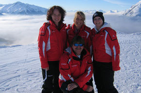 In unserem Skischulbüro erwarten Sie v.l. Melanie, Manu, Christine und Wolfgang Kloyer